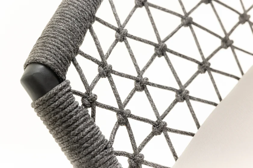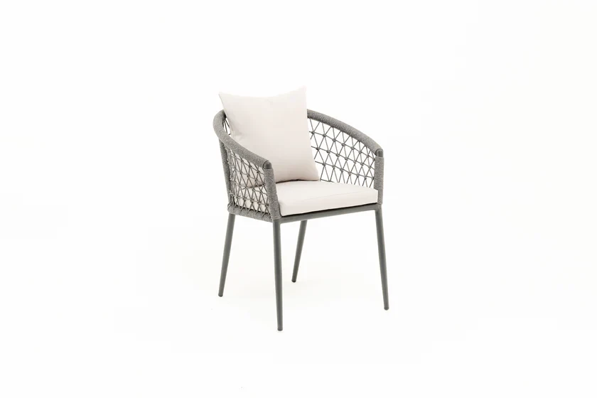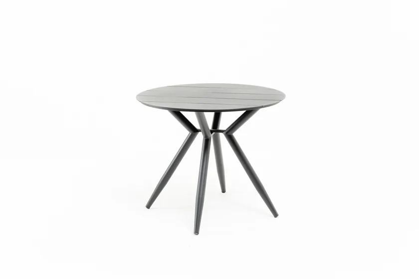 The round bistro table, featuring a sleek powder-coated aluminum slat top and a practical parasol hole, pairs perfectly with four FLYNN rope weave chairs. Each armchair is meticulously crafted with weather-resistant polyester rope and plush high-density foam cushions wrapped in durable fabric upholstery. Whether you’re enjoying morning coffee or hosting an al fresco brunch, this set ensures every outdoor moment feels extraordinary.