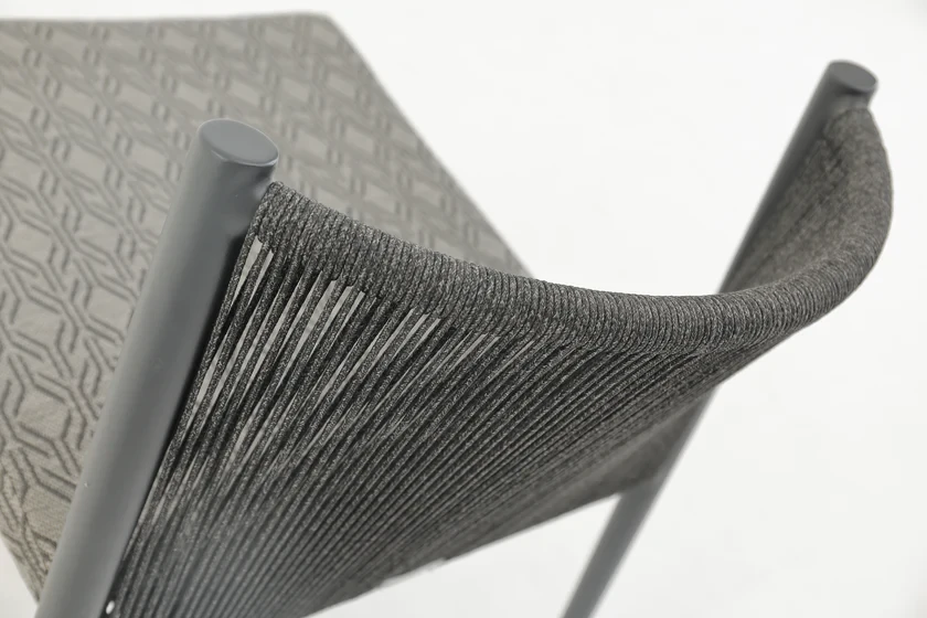 Built with a powder-coated aluminum frame, this dining set is lightweight yet incredibly durable, offering corrosion and scratch resistance for all-weather use. The stylish olefin rope weave on the chairs boasts excellent colorfastness, water resistance, and quick-drying properties, ensuring effortless maintenance and lasting beauty. The included seat cushions, upholstered with Sunproof® Technical Textile, resist stains, mildew, and UV damage, making them ideal for outdoor use while providing unparalleled comfort.