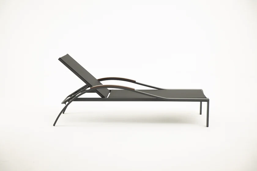 Elegantly finished with teak wood armrests, the Sun Lounger adds a touch of sophistication to any outdoor space while guaranteeing eco-friendly, low-maintenance durability. Whether you're poolside on a sunny day or stargazing at night, the charcoal-toned frame and black mesh upholstery provide a timeless aesthetic that complements every setting.