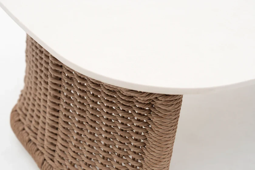 Crafted with a precision-welded, marine-grade aluminum frame, this coffee table resists rust and weathering with ease. The natural HDPE wicker weave, available in a calming natural tone, is both fade-resistant and eco-friendly, making it perfect for sunny afternoons on the patio. Topped with ultra-durable sintered stone, the table resists scratches, stains, and UV rays while maintaining a luxurious look that complements any outdoor décor.
