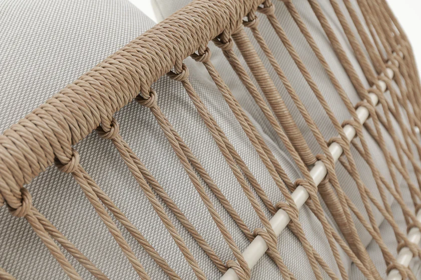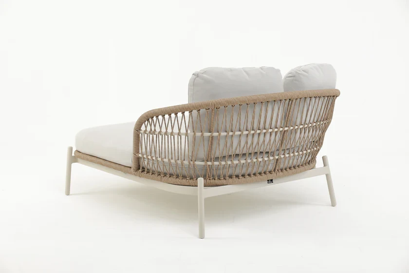 Perfectly sized, the Outdoor Daybed features an elegant ivory white frame, natural wicker weave, and coconut-colored cushions for a versatile, timeless aesthetic that complements any outdoor space. With its eco-friendly materials and thoughtful design, this daybed combines sustainability with luxury.